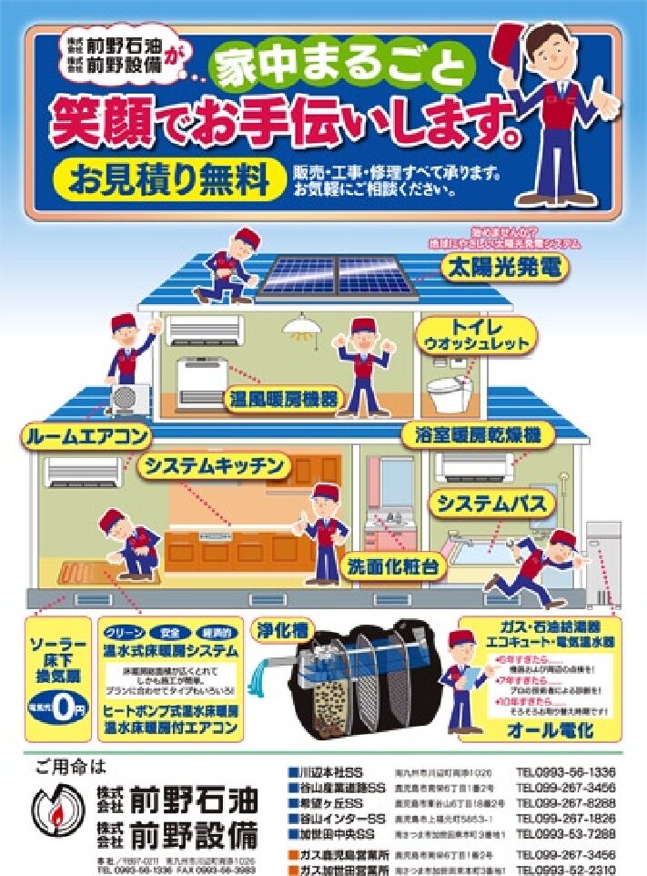 前野石油はこれまで培ってきた設備工事の経験を生かし、様々な家庭用設備の工事を承っております。